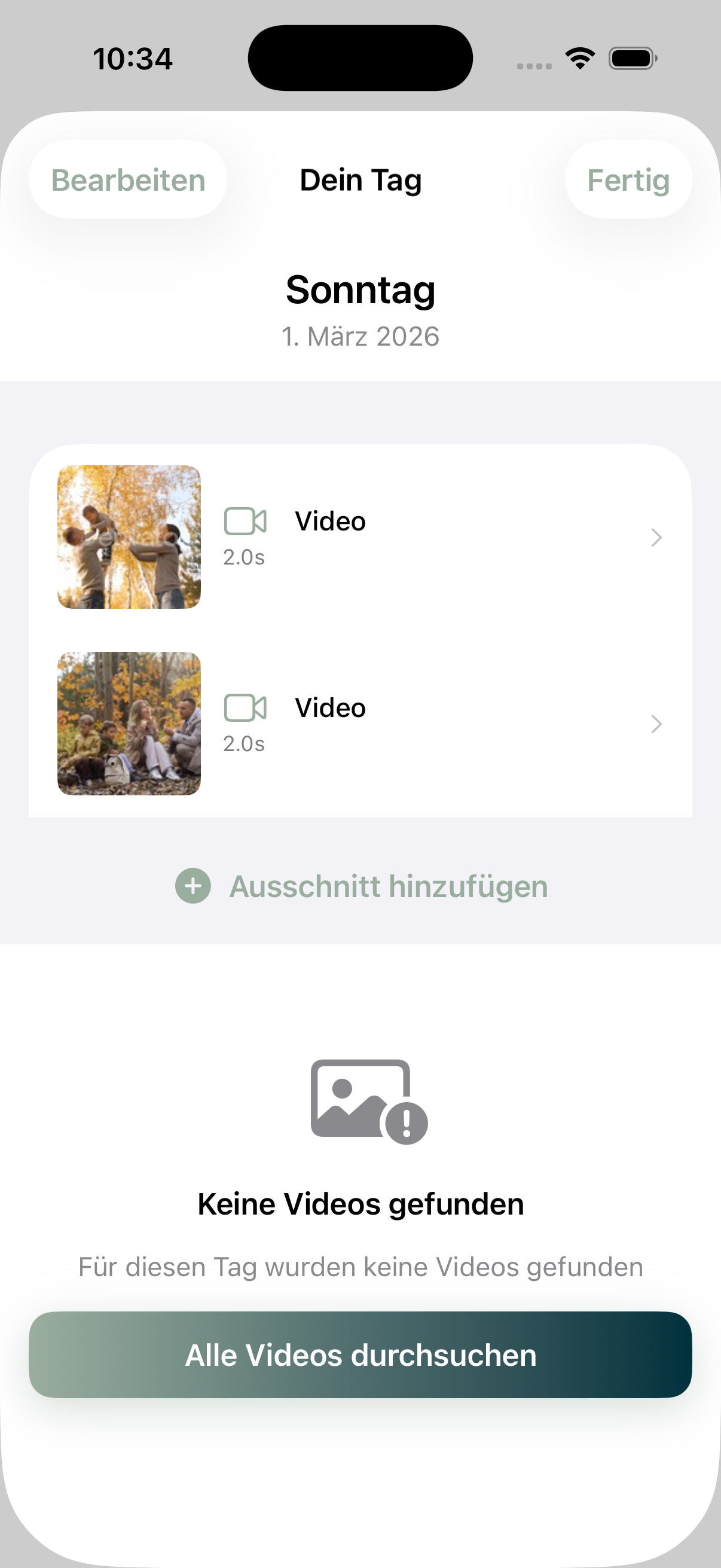 - Mehrere Clips pro Tag möglich – alles wird zu einem großen, zusammenhängenden Video