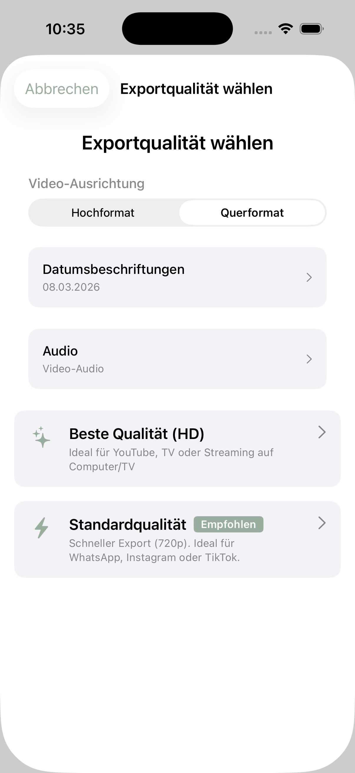 Sammle beliebige Medien ohne Datumsbezug und exportiere sie als Video – ideal für
