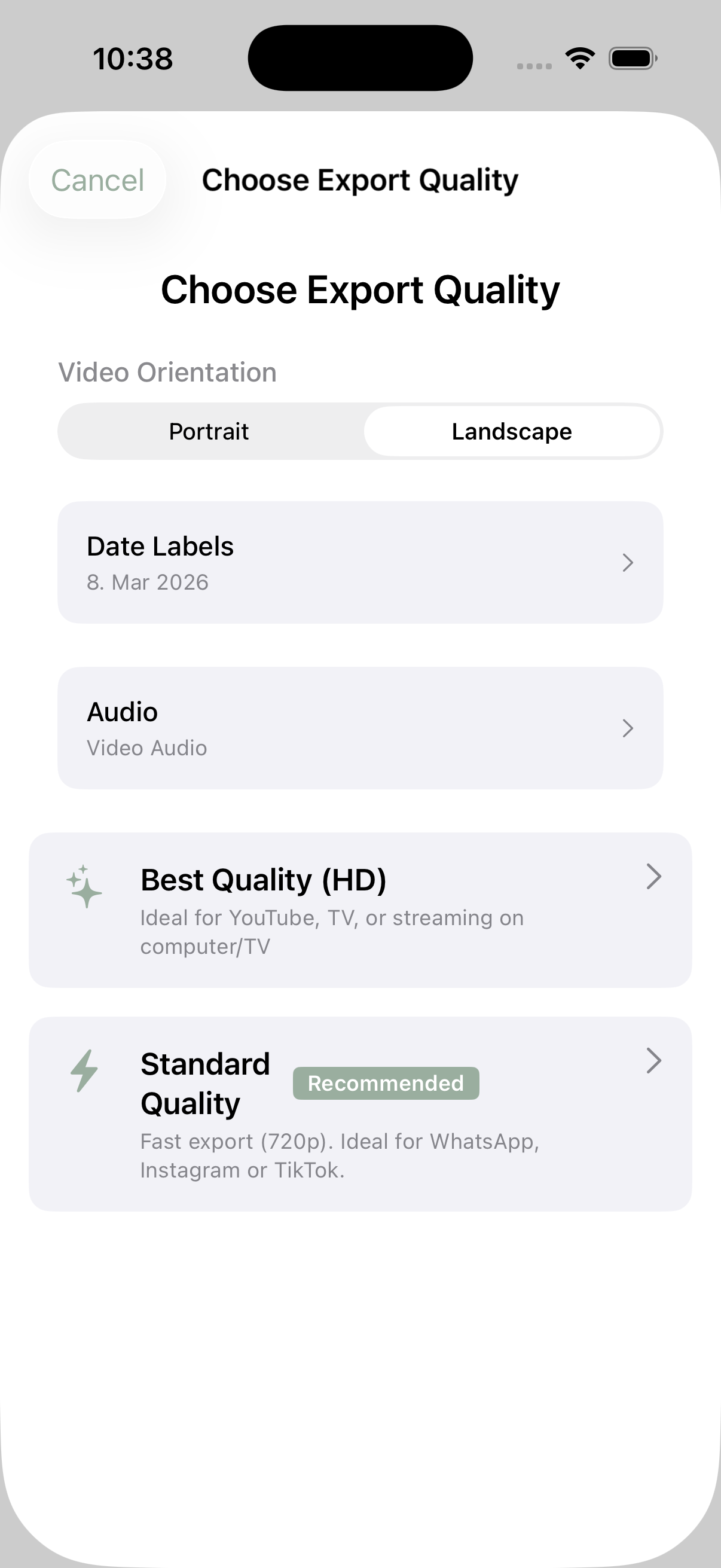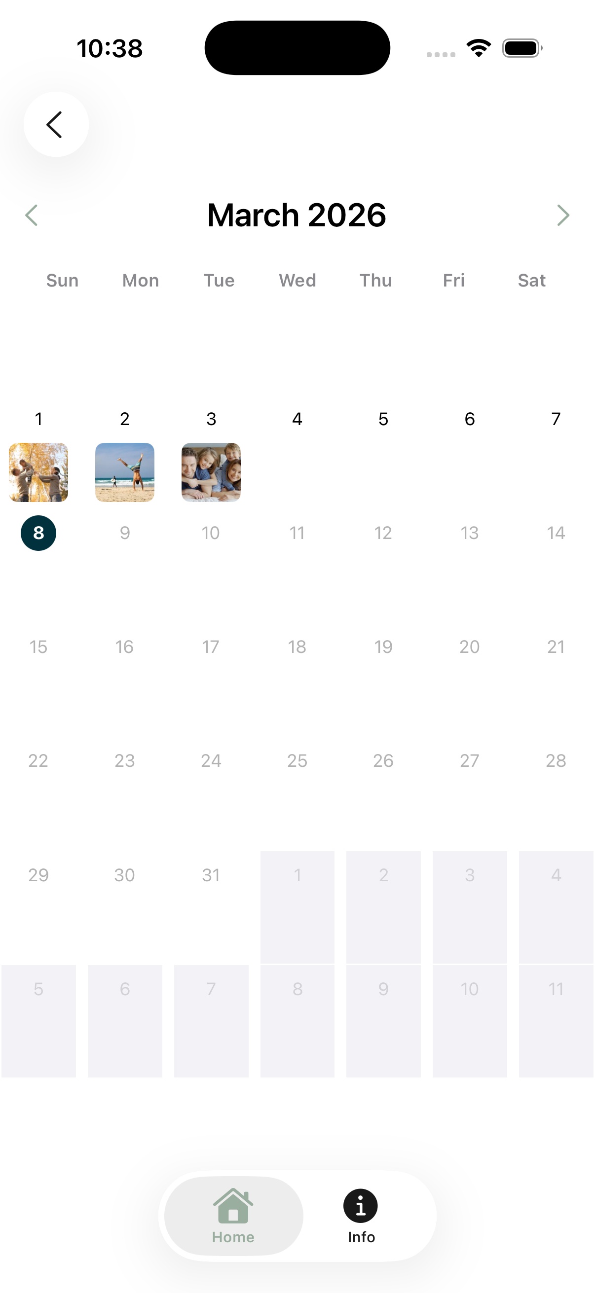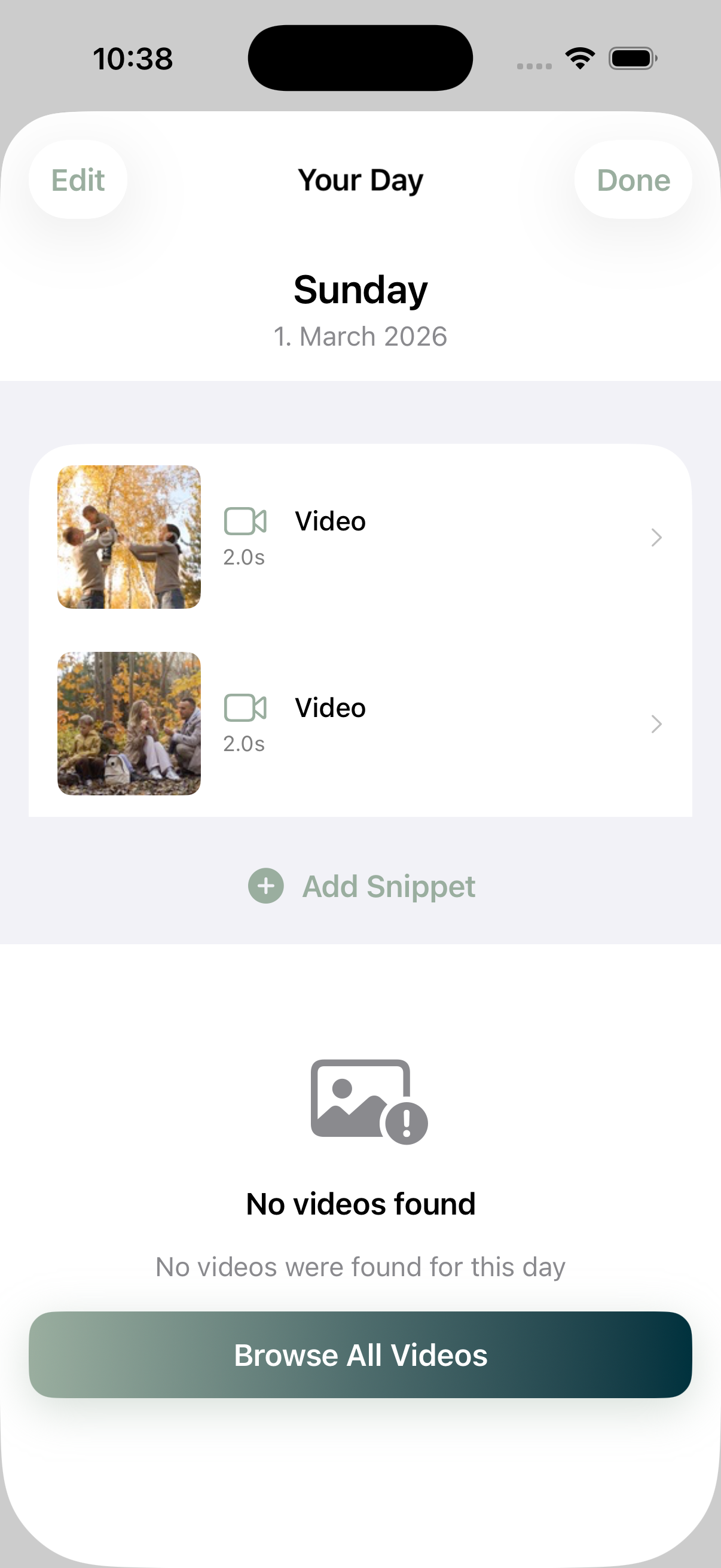 Save one or multiple clips/photos per calendar year and per day. Perfect for